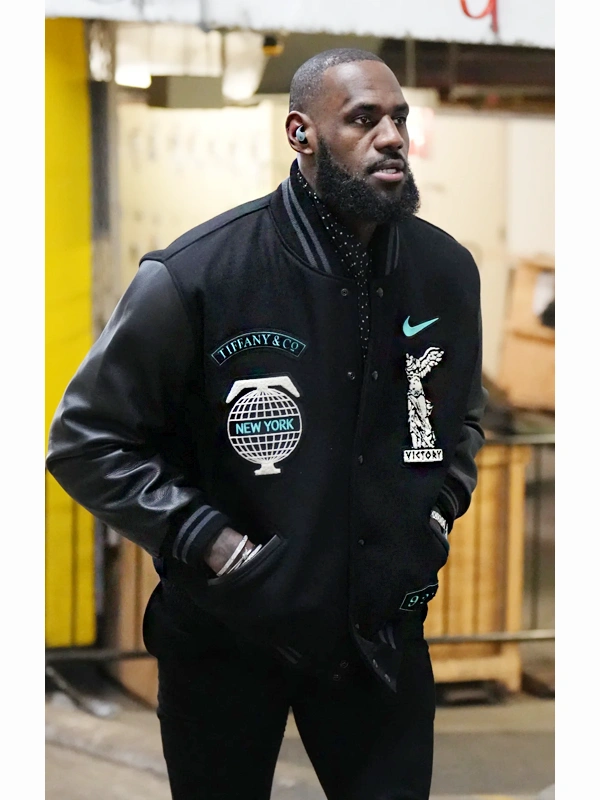 Lebron James Black Varsity Wool Body and Leather Sleeves Jacket