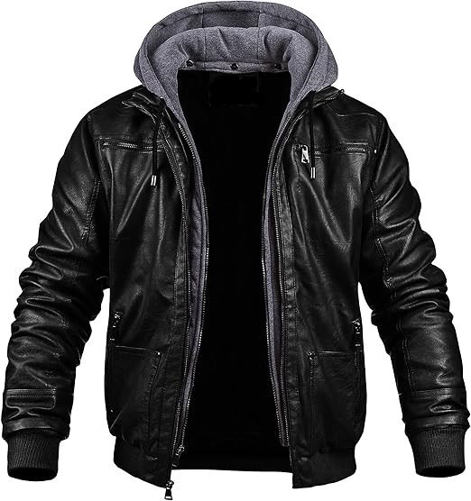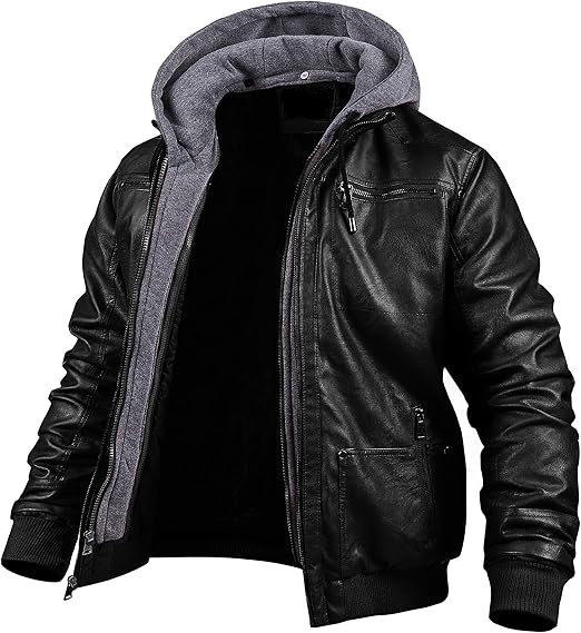 Men’s Motorcycle Black Leather Hooded Jacket