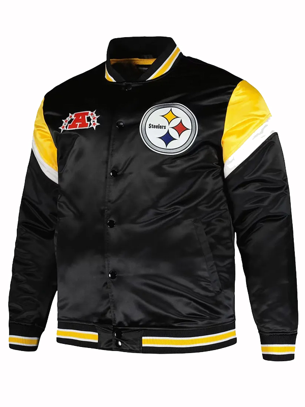 Men’s Pittsburgh Steelers Black Satin Bomber Jacket