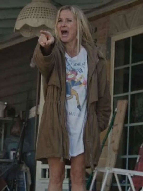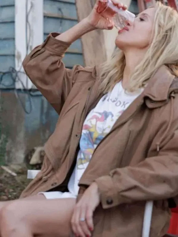 Mira Sorvino Signing Tony Raymond Brown Leather Jacket