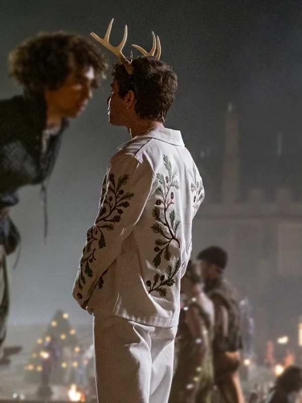 Saltburn Oliver Quick Green Leaf Embroidery White Cotton Jacket