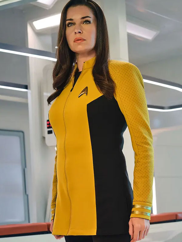 Rebecca Romijn Star Trek Strange New Worlds Una Chin-Riley Yellow and Black Costume Jacket